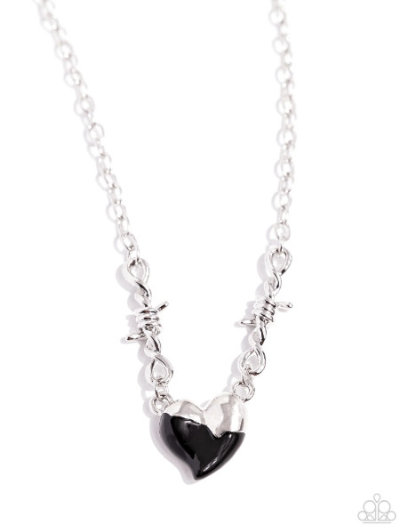 Twists of silver and a half-silver, half-, black-painted heart connect to a classic silver chain around the collar for a trendy statement. Features an adjustable clasp closure.